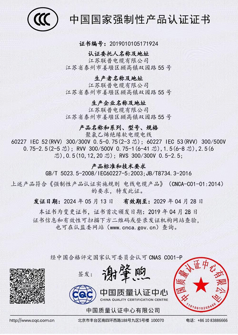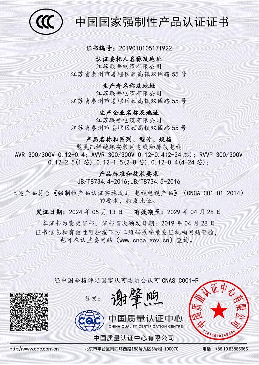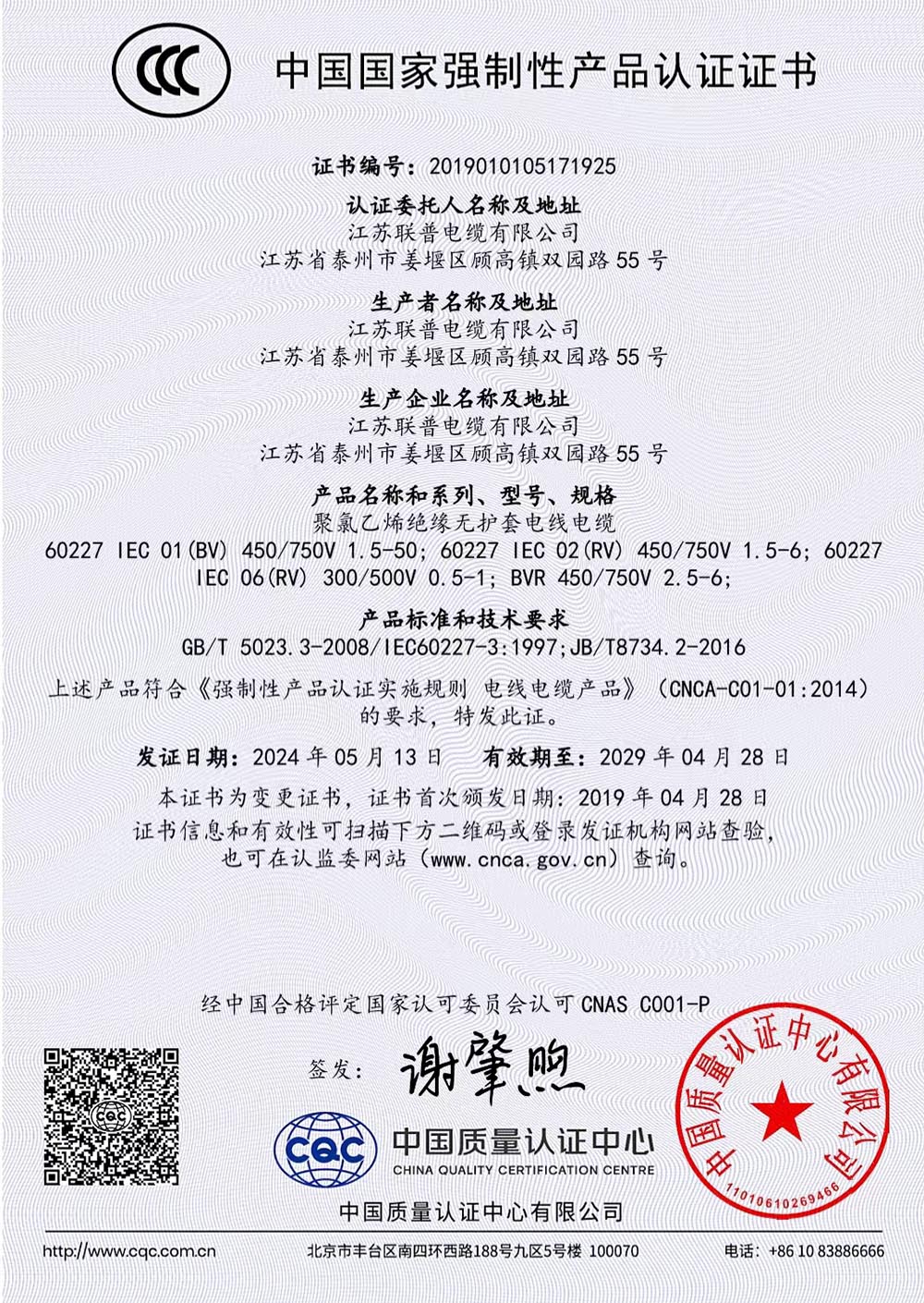 产品认证证书