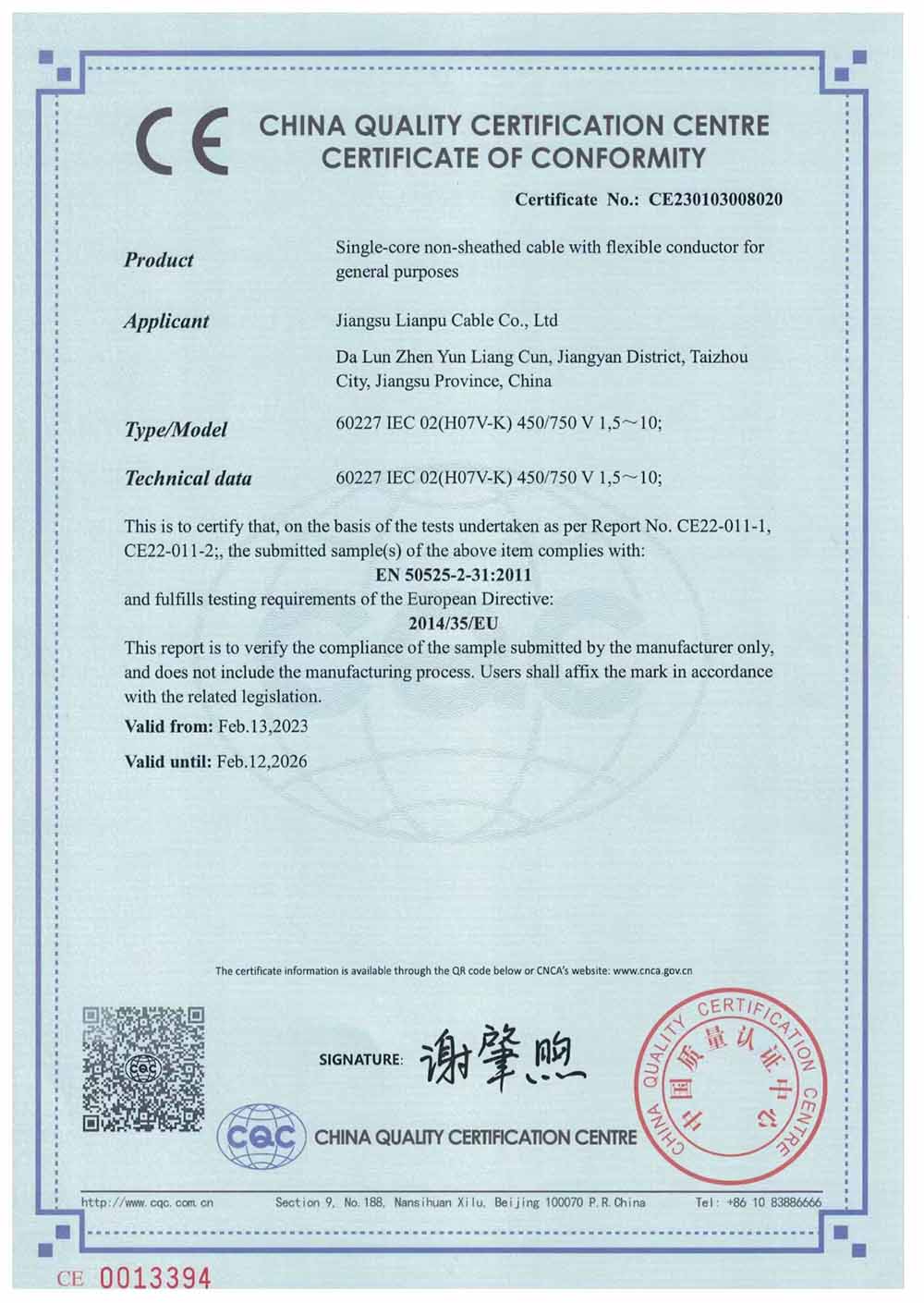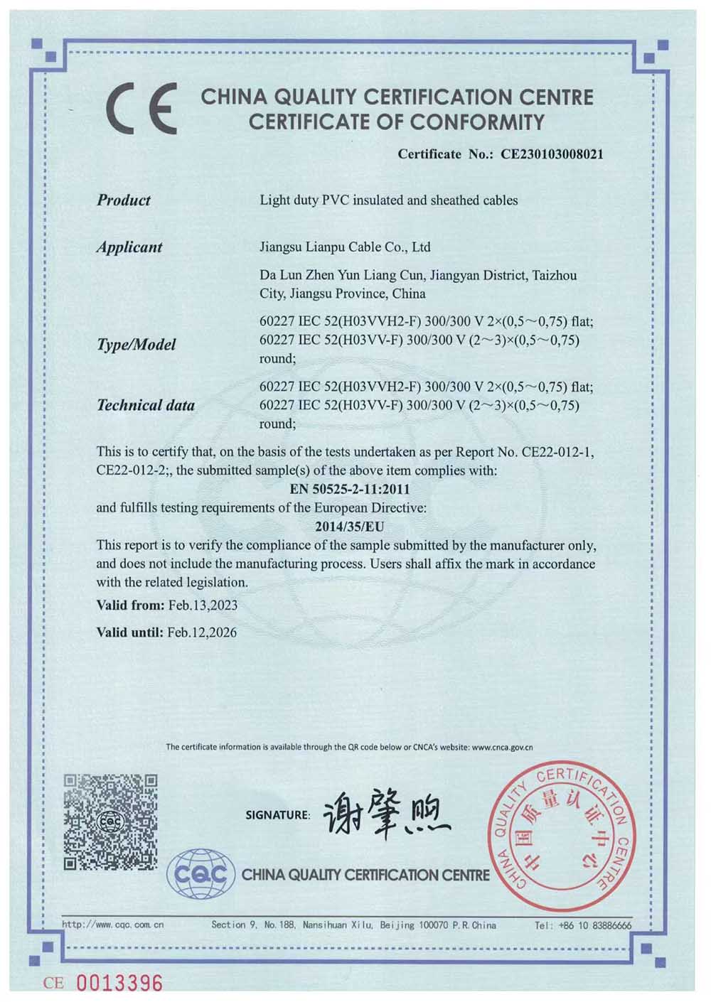 CE认证证书